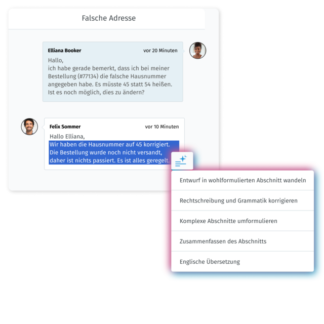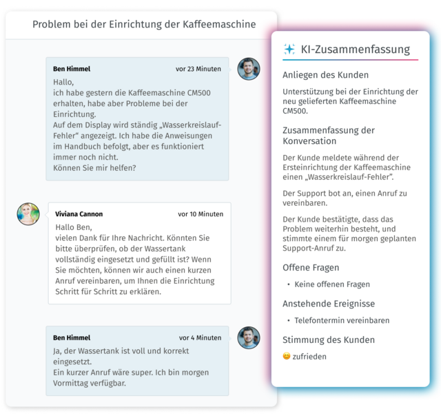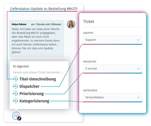 Keine KI mit Eigenleben, sondern Funktionen, die Ihrem Team den Rücken für die eigentlichen Kundenanliegen freihalten.