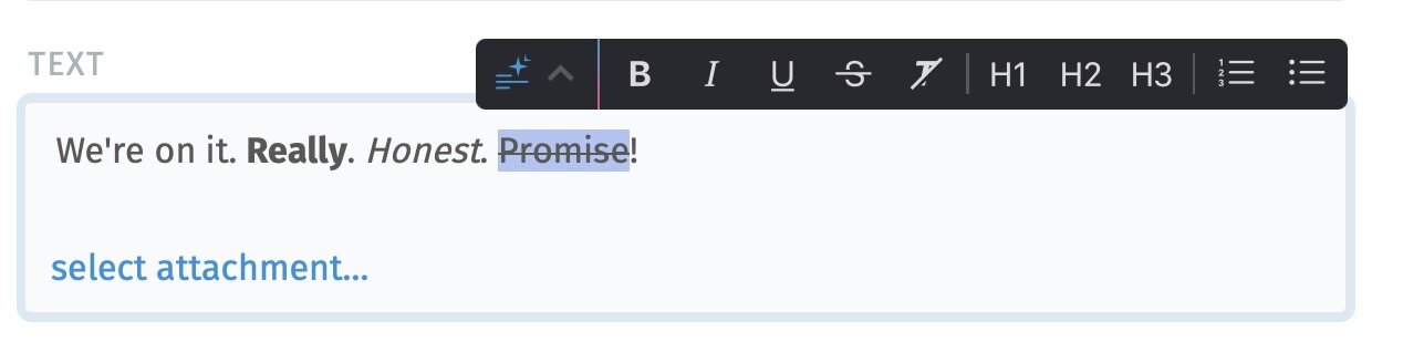 Tools at your fingertips: Use formatting options such as bold, italics, or lists, as well as the new AI writing tools, directly on your selection.